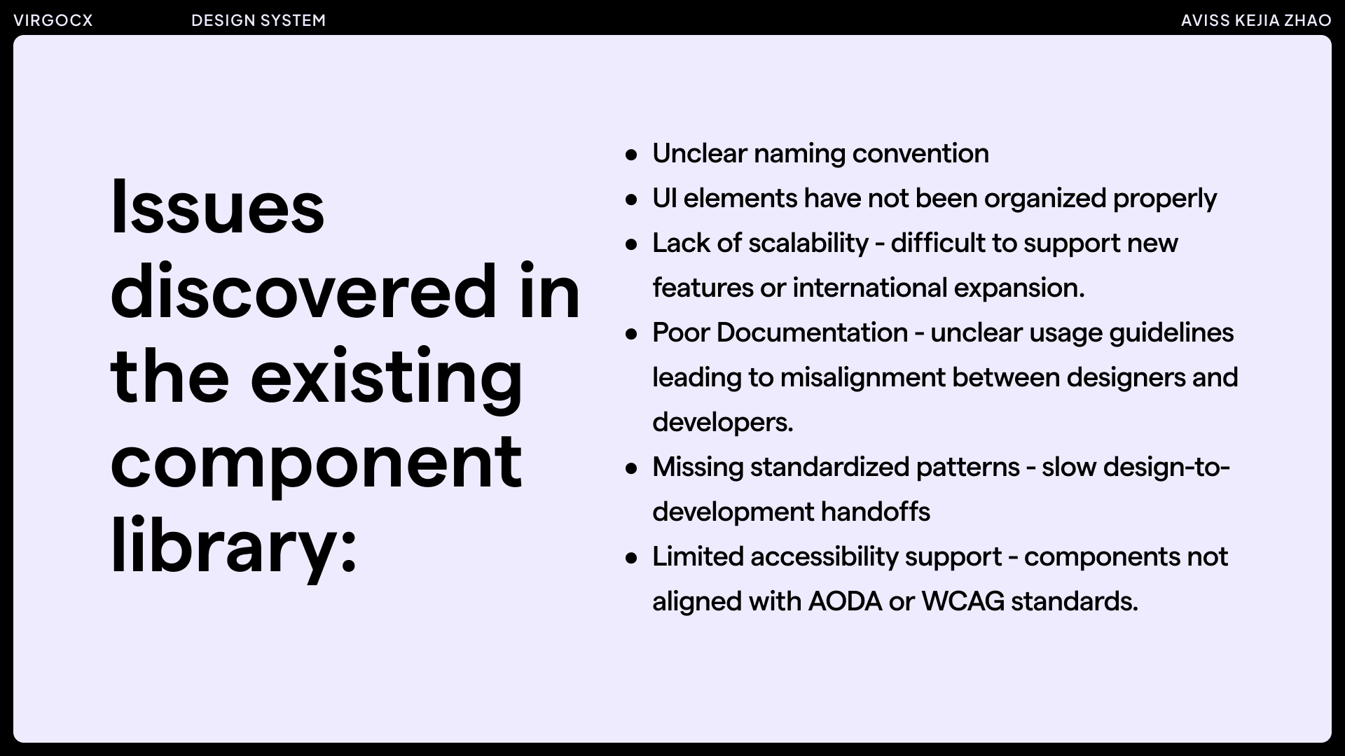 The original design system provided limited support for accessibility, leaving an opportunity to integrate best practices. To address this, I did research and competitor analysis, then incorporated accessibility principles—such as proper color contrast, typography choices, and interaction patterns—into the updated system, ensuring it can scale effectively while supporting consistency and inclusivity across products.