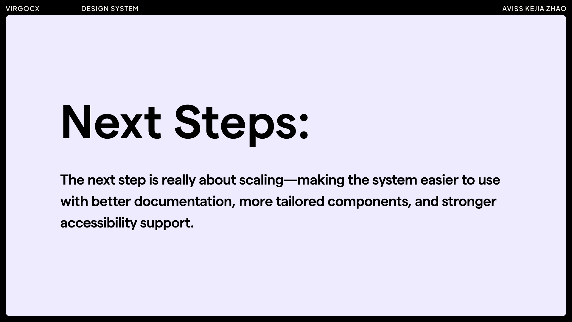 Working on the design system was a valuable experience that went beyond creating UI components. It gave me a deeper understanding of how design decisions impact scalability, consistency, and cross-team collaboration. I realized that a design system is never truly complete, but rather an evolving foundation that grows with the product and organization. Through this process, I also learned the importance of balancing design clarity with flexibility, ensuring that components are not only standardized but also adaptable to future needs. This experience strengthened my ability to think systematically, collaborate closely with product managers and developers, and approach design with a long-term perspective.